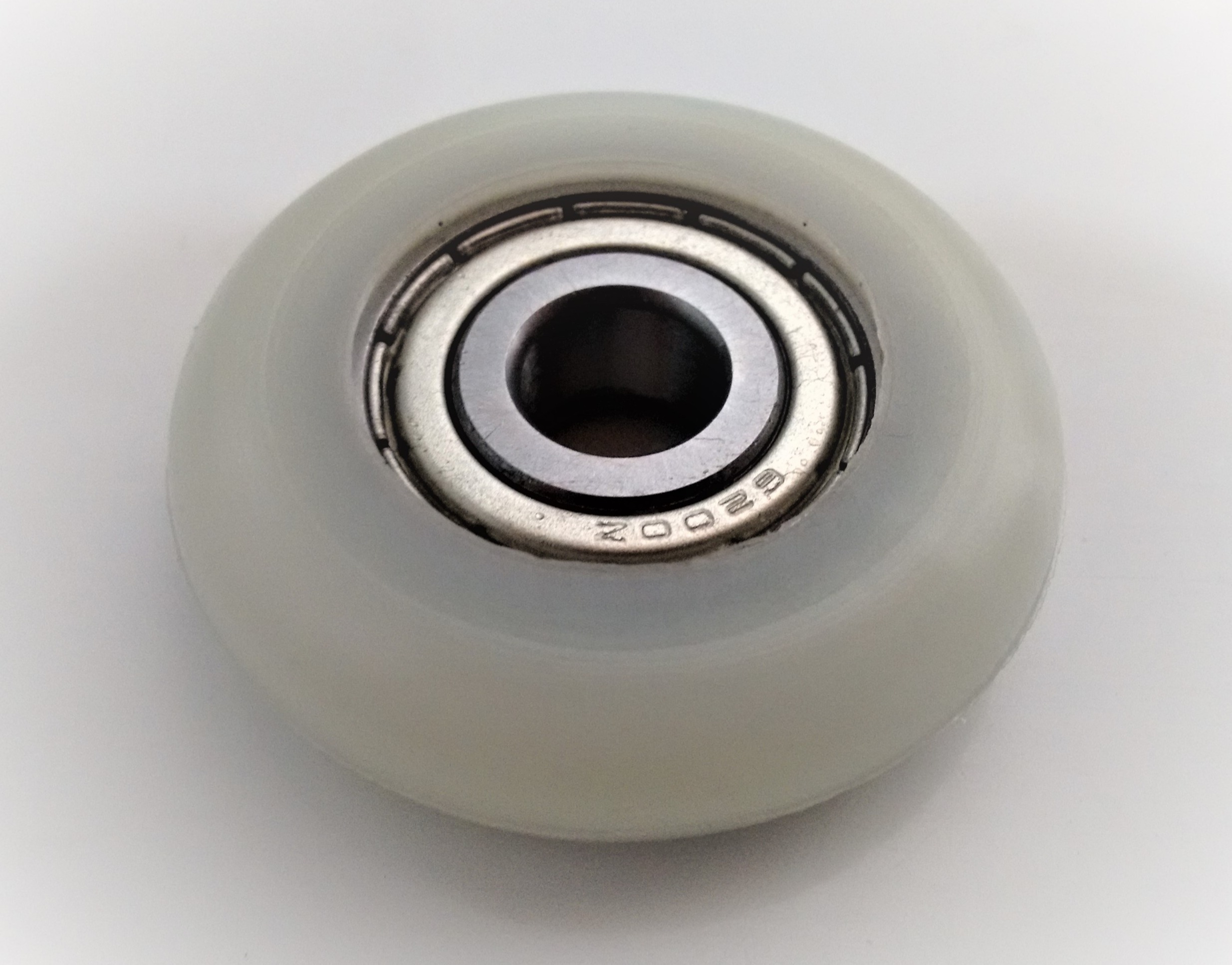 Fabricamos rodízios para portas Roll-up através do processo de sobre-injeção, onde os rolamentos entram como insertos no molde e ficam incorporados de maneira perfeita ao rodízio.